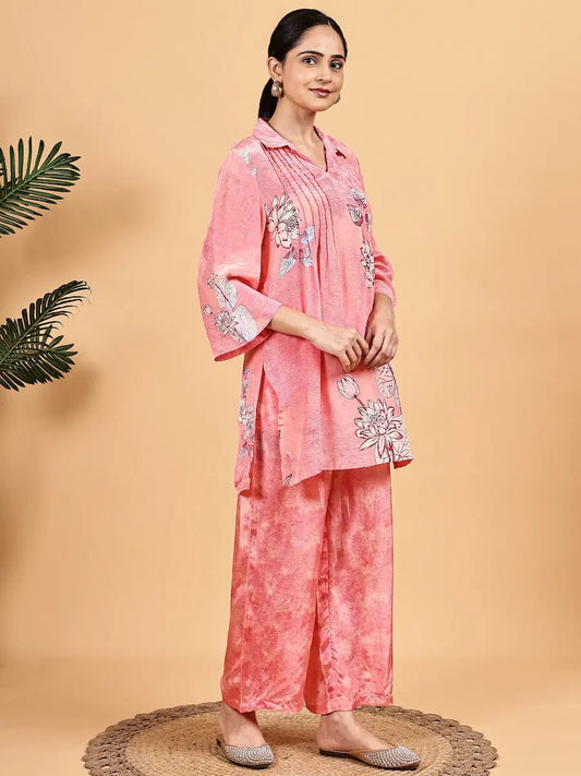 Lightweight Pink Co-Ord Set – Crepe Viscose Two Piece Dress for Women