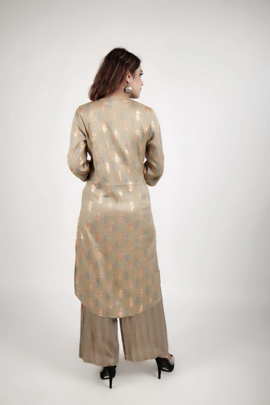 Off-White Printed Kalidar Kurta with Printed Straight Pants